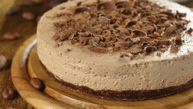 Versez la préparation sur le fond du cheesecake et faites cuire 50 minutes. Laissez refroidir puis réservez au frais au moins 4 heures. Au moment de servir, munissez-vous d'une râpe et ajoutez le chocolat sur le gâteau.