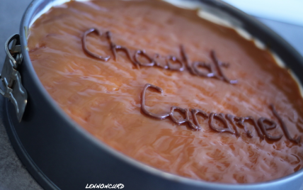 Préparer ensuite le caramel en versant le sucre dans une casserole sur feu moyen, sans remuer. Le sucre va fondre puis blondir, à ce moment là, retirer du feu et verser le beurre en dés, et fouetter sans cesse. Dès que le beurre a fondu, verser la crème et remettre sur le feu quelques minutes afin que le caramel épaississe un peu. Il doit enrober la cuillère. Le caramel épaissit et durcit en refroidissant, c'est pourquoi il est plus simple de le travailler chaud. Le verser alors sur le cheesecake uniformément, laisser reposer au frigo toute la nuit...