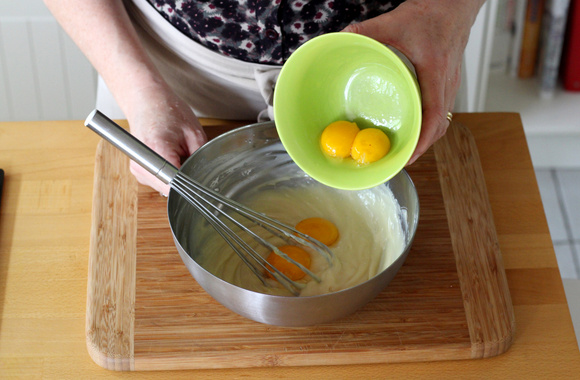2Ajoutez les jaunes d'oeufs et mélangez.