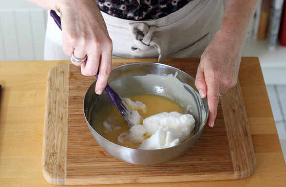 4Incorporez 1/3 des blanc puis le reste avec une spatule.