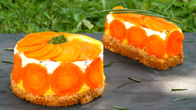 Démoulez et décorez avec des rondelles de carottes cuites.
