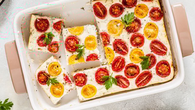 Une entrée fraiche et gourmande parfaite pour profiter des tomates cerise et de l'onctuosité du fromage frais.
