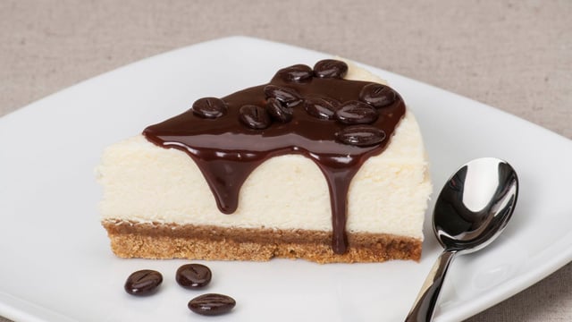 Une cheesecake à déguster en dessert, avec unse sauce chocolat.