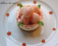 Incorporez la gélatine ramollie dans l'eau froide et soigneusement éssorée, l'eau de rose et le philadelphia, mélangez énergiquement au fouet à main. Reservez au frais. Fouettez 25 cl de crème liquide très froide avec 25g de sucre en poudre en chantilly bien ferme. Incorporez-la à la préparation précédente délicatement. Versez dans les cercles et laissez prendre au frais pendant 3 heures. - 4