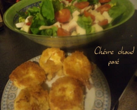 Prendre un fromage de chèvre ou une buche que l'on coupe en rondelles, on roule dans l'oeuf et ensuite dans la chapelure.