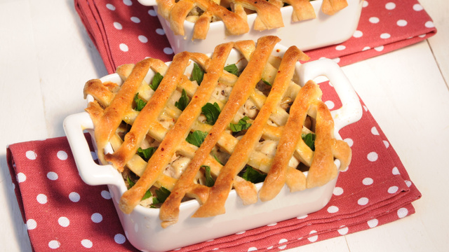 Recouvrir les cassolettes de lanières de pâte pour faire des croisillons. D'abord dans un sens, puis dans l'autre. A l'aide d'un couteau, égaliser les bandes de pâtes sur les côtés des cassolettes. Et bien les appuyer pour qu'elles se soudent sur les cassolettes. - 4