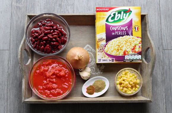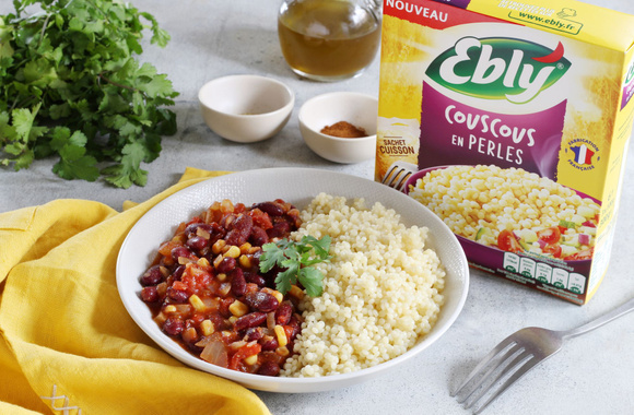 Un chili version veggie et oriental. Le riz est remplacé par des perles de couscous et la viande par des légumes.