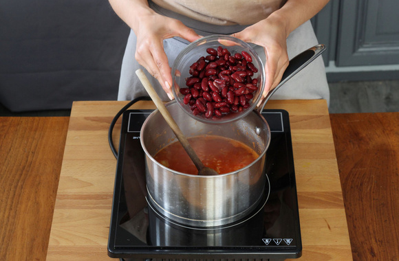 6Egouttez et rincez les haricots rouges. Ajoutez-les dans la marmite.