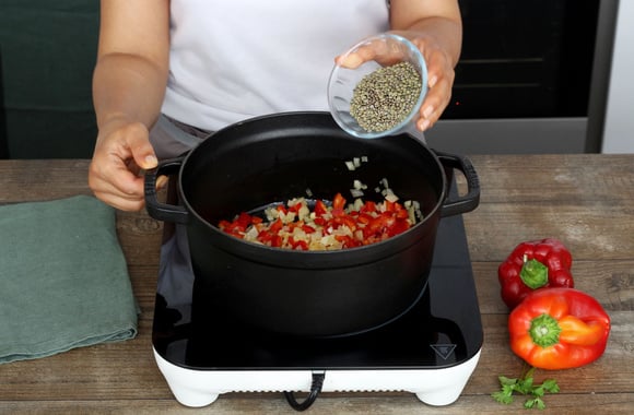 4Ajoutez les lentilles et couvrez le tout d'eau et laissez cuire 10 minutes.