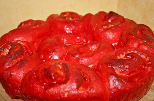 C'est un chinois à la crème pâtissière que j'ai voulu revisiter en mettant du colorant alimentaire rouge et de l'arôme à la fraise ! Un vrai régal !