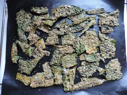 3Disposer les feuilles sur un papier sulfurisé et enfourner dans un four préchauffé à 150°C pendant 20min. Retourner les feuilles et poursuivre la cuisson 10min, le temps que les feuilles soient devenues croquantes.
