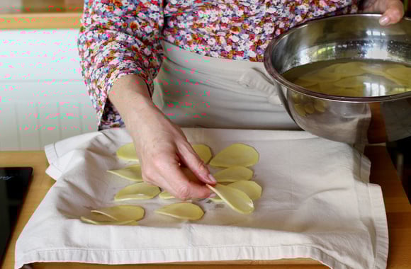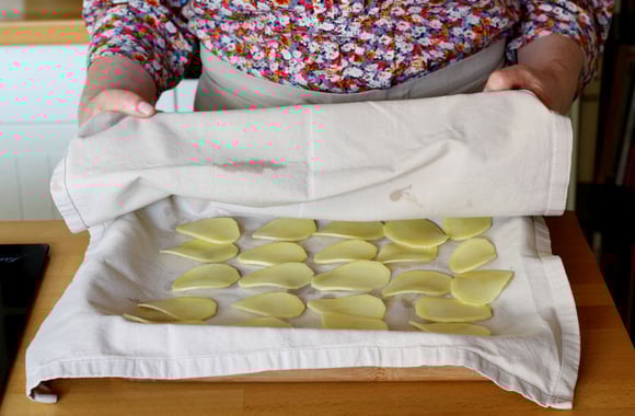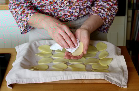 3Egouttez puis étalez vos rondelles sur un torchon, sans les superposer.