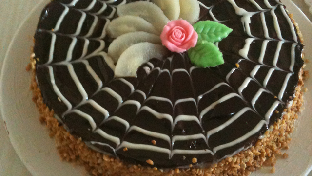 Décorer les côtés avec les cacahuètes concassées.