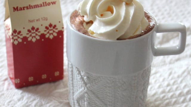 Versez dans la tasse, nappez de chantilly, parsemez de chamallows et dégustez.