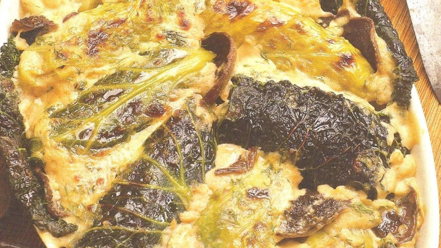 Poursuivre jusqu'à épuisement du chou et de la farce disposer dans un plat allant au four et recouvrir d'une béchamel, les gourmands ajouteront du fromage.