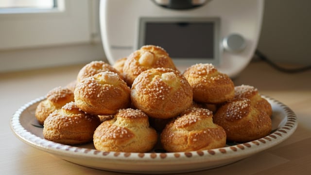 Faire tourner le thermomix à vitesse 5 puis ajouter les oeufs un par un par l'orifice du couvercle.