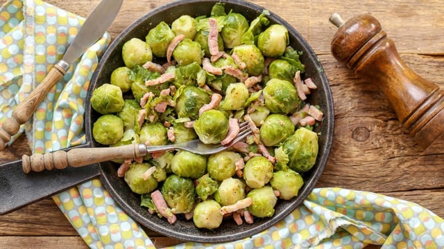 Une recette très simple mais tellement délicieuse de choux de Bruxelles aux lardons.