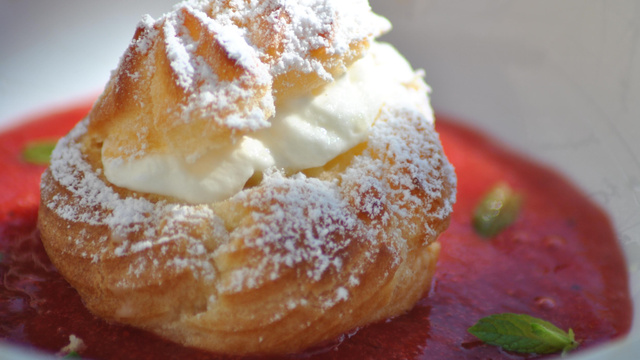 Remettre les chapeaux saupoudrer de sucre glace. Pour le service : dans une assiette à dessert creuse, versez le coulis de fraises puis le choux au centre avec quelques feuilles de menthe. Pour les plus gourmands déposez sur la table le reste de choux et coulis. Pour plus d idées venez faire un tour sur mon blog : aux délices du sud. A très bientôt !