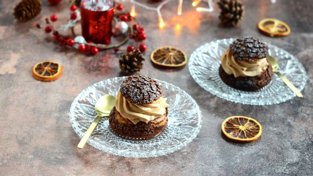 Les fêtes approchent et pour innover et changer un peu de la traditionnelle bûche, voici une recette simple mais si chic de choux craquelin au praliné et au chocolat. Le craquelin est à base de chocolat et la crème montée au praliné. Deux parfums et association qui marche à merveille.