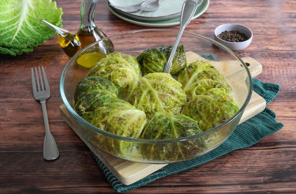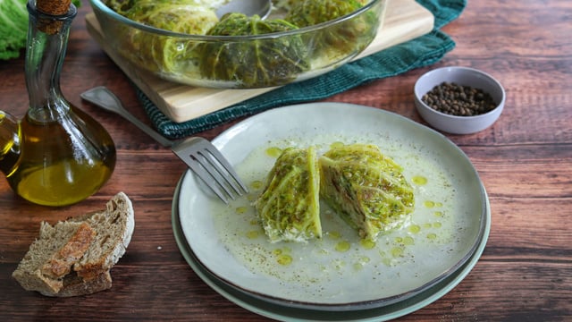 Des délicieux choux farcis sans viande. Une recette parfaite pour une alimentation végétarienne. C'est aussi une recette facile et anti-gaspi, car elle permet de réutiliser du pain rassis dans la farce.