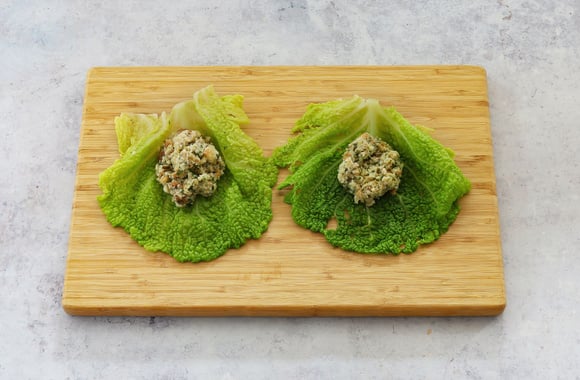 Garnissez les feuilles de chou en y répartissant la farce au milieu.