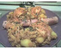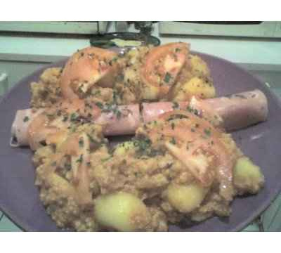 -Dans une poele, versez la moutarde, de l'huile, sel, poivre, echalotes et ail.