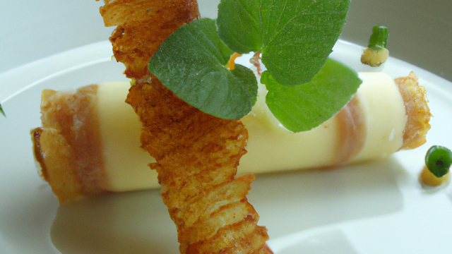 Délicieux cigare sucré salé croustillant mariant Fourme d'Ambert, poire et verveine du Velay.