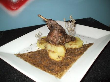 Laissez mijoter 1 h à feu doux, 15 min avant la fin de cuisson rajoutez ' y les foies. A la fin de la cuisson , passez la sauce au presse purée avec les 2 foies, le sang des 2 lapins et en retirant les feuilles de laurier. Remettez les morceaux de lapin dans le faitout avec la sauce et servir avec des pommes de terre.
