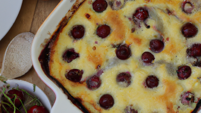 Sortez le beure fondu du four, ajoutez-le au liquide puis ajoutez le lait tout en remuant. Une fois mélangé, ajoutez les cerises à la préparation.