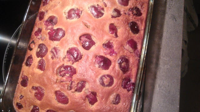 Beurrer le moule disposer les cerise est verser la préparation dessus.