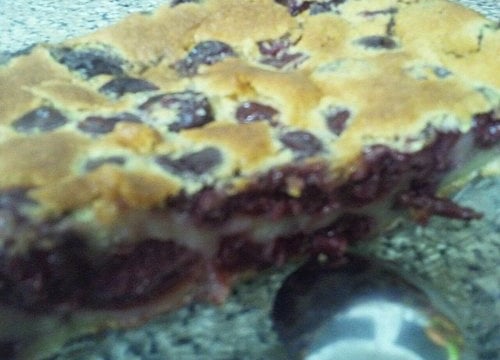 Verser la préparation et les cerises dans le plat.