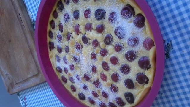 Mettre le clafoutis dans un four préchauffé à 180°C pendant 40 min. Une fois le clafoutis sorti du four, le saupoudrer de sucre et laisser refroidir.