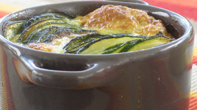 Répartisser les rondelles de courgettes à la verticale, dans les ramequins beurrés.