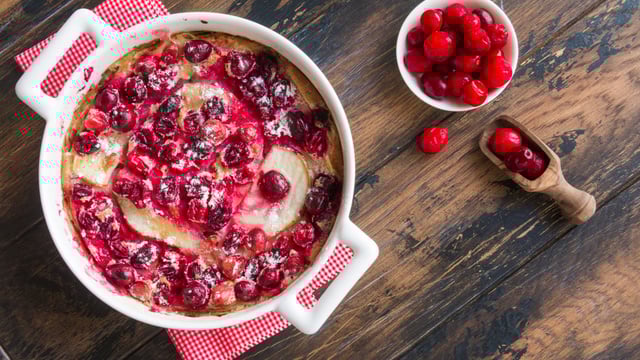 Pour changer des recettes habituelles de clafoutis aux cerises, nous vous proposons ce clafoutis aux cranberries légèrement acidulé.