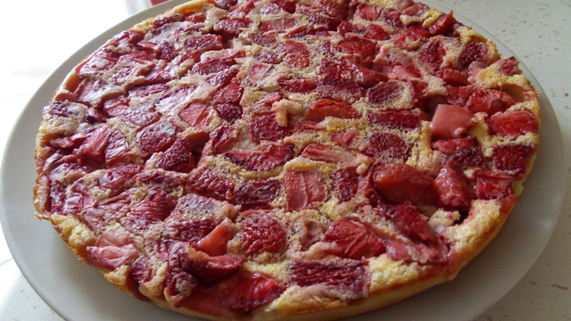 Ajouter les fraises coupées en morceaux sur le mélange.
