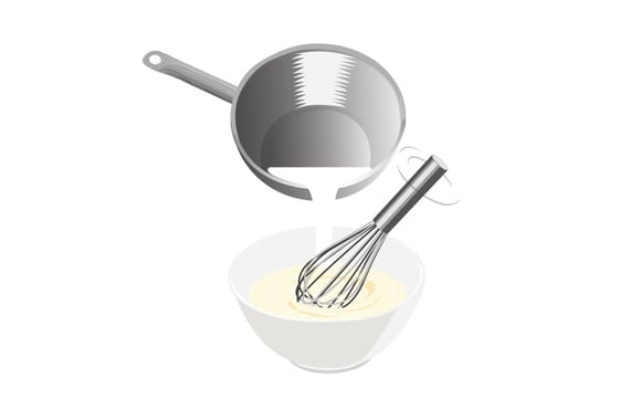 8Versez-le petit à petit sur le mélange précédent et fouettez, jusqu’à ce que le mélange soit homogène.