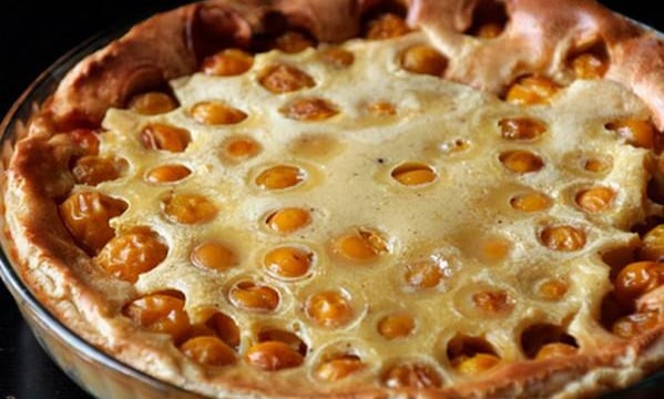 Placez les mirabelles dans le fond du plat puis versez la pâte dessus.