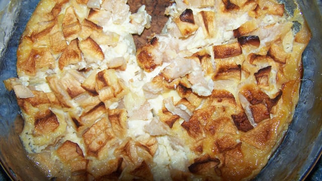 - 1Lavez et coupez les pommes en petits dés. mMettre dans le plat à gratiné.