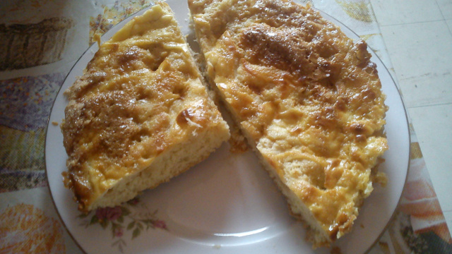 Pelez les pommes et ôtez-en le trognon, coupez-les en cubes et disposez ceux-ci sur la pâte. Recouvrez avec la seconde moitié de pâte. Enfournez 35 minutes à 200°C (th. 6-7).