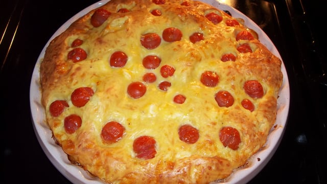 Versez votre mélange dans un plat mettre dessus les tomates cerises.