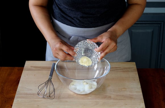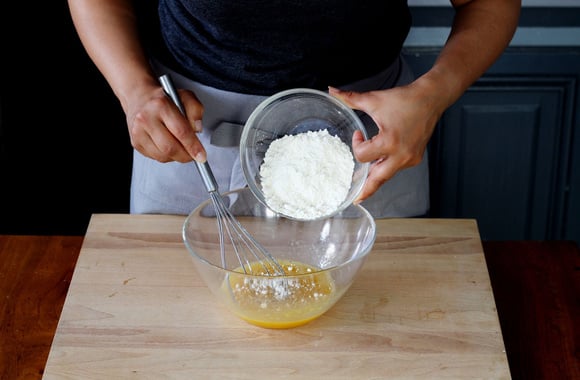 3Ajoutez la farine dans le saladier.