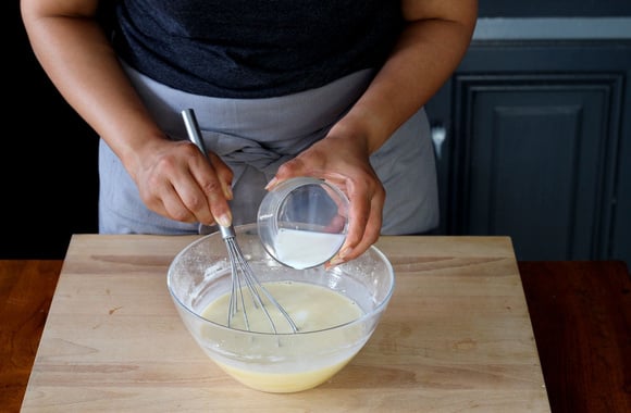 5Ajoutez le lait.