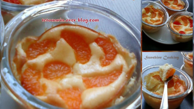Versez un tiers de la pâte dans les moules préalablement beurrés, disposez les quartiers de pamplemousse et les quartiers de mandarines, recouvrez du reste de pâte,