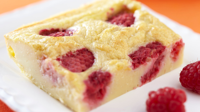 - 3Ajoutez le lait, la crème et le gingembre dans la préparation et mélangez bien. Beurrez et farinez le moule. Disposez les framboises au fond de ce moule, puis versez la pâte dessus. Enfournez ensuite à 180 °C pendant 30 à 35 min. Laissez refroidir le clafoutis avant de déguster.