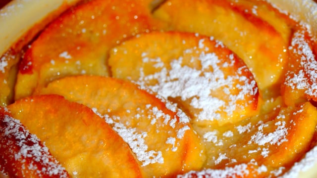 Posez les pommes en rosace dans des moules individuels. Versez la crème aux œufs.