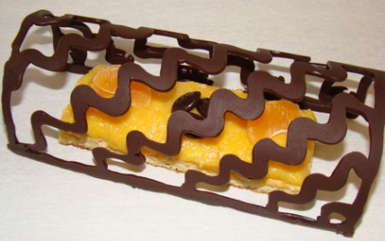 Avec une poche à douille, faire un carré en chocolat de la dimension de votre gâteau sur du papier sulfurisé.