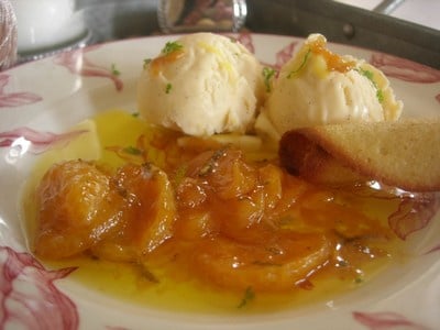 Dans une assiette déposer deux boules de glace vanille et ajouter les quartiers de clementines.
