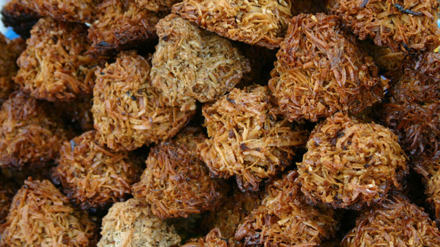 Enlever la casserole du feu, ajouter la noix de coco râpée et mélanger bien. Remettre la casserole au feu pendant, à peu près, 5 minutes.