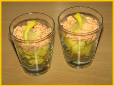 Détaillez les écrevisses en petits morceaux et mélangez-les avec la sauce cocktail et le jus de citron pressé au préalable.