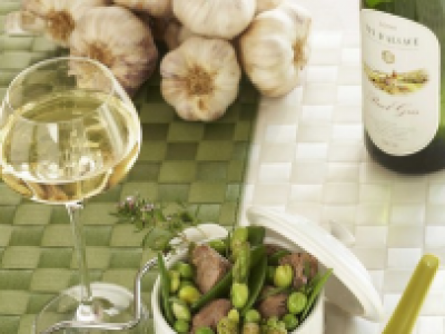 - 2Faire blanchir séparément, à l'eau salée, les légumes nouveaux : asperges, fèves et pois gourmands pendant 1 à 2 min et petits pois pendant 5 min. Égoutter et refroidir aussitôt dans de l'eau glacée. pour conserver les légumes croquants.Faire dorer les cubes d'agneau égouttés dans une sauteuse. Déglacer avec le vin, ajouter les légumes puis assaisonner. Laisser mijoter doucement pendant 15 min. Ater la branche de sarriette de la crème d'ail et mixer. Répartir le sauté d'agneau dans des cocottes individuelles chaudes, napper de crème d'ail (ou servir séparément), saupoudrer de feuilles de sarriette et servir aussitôt.